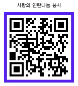 7. 사회봉사부 주관 “2025 희망의 연탄 나눔” 이 12월 13일 토요일에 진행됩니다. 연탄 나눔 봉사와 더불어 기부도 함께 진행하고자 합니다. (아래쪽 QR 코드 활용 설문 참여) 연탄 기부는 연탄 10장에 10,000원(1만원)부터입니다. (예: 3만원(30장 기부), 5만원(50장 기부)) 소외된 이웃에게 따뜻한 겨울을 선물하고자 하는 분들의 따뜻한 마음을 기다립니다.